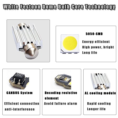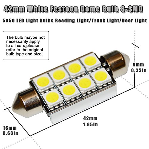 Festoon Dome Light LED Bulbs - 42mm(1.65'') - 8SMD - 5050, CANBUS technology, No Error, No Polarity, 12V, white light (8-SMD, White)