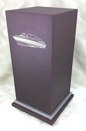PERSONALIZED Custom Engraved Motor Boat Cremation Urn Vault by Amaranthine Urns, made in the USA, Eaton SE Painted Silver (up to 200 lbs living weight) (Celestial Blue)