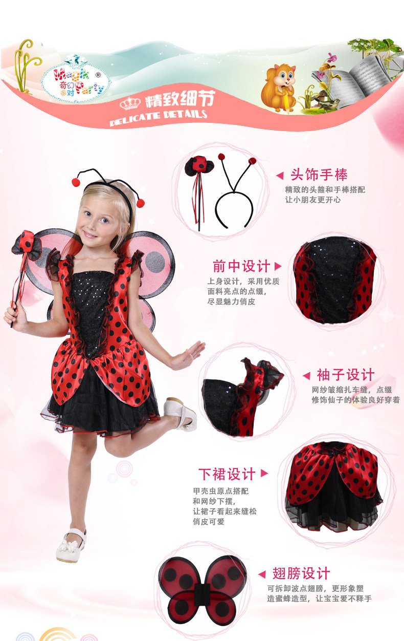 万圣节儿童演出服装女童昆虫金龟子甲虫裙学校表演服饰