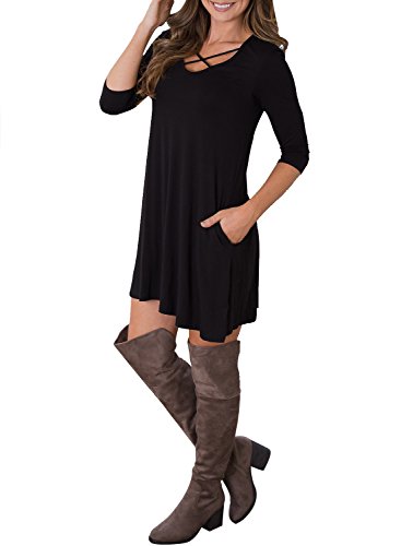 Tunic dress, Loose fit, Criss Cross neck, Swing dress, 3/4 Sleeve, Swing hem, Short length, Tunic top dress, long Tshirt, Casual wear tshirt dress, Ruffle A-Line Dress, Dress with pockets, Sundresses, Super soft, Casual style