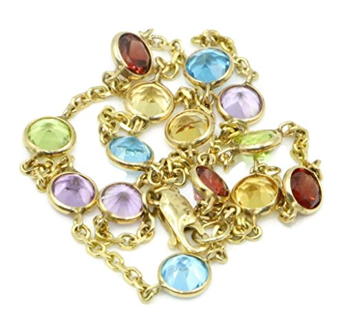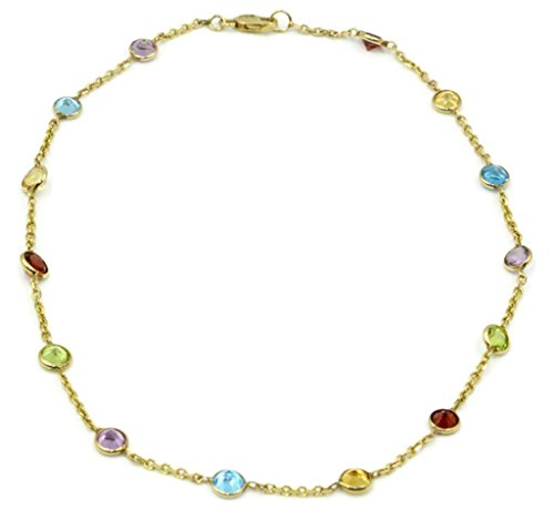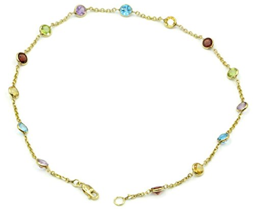 -. Title : Multi-color Gemstones 10" Anklet,14K Yellow Gold Cable Chain