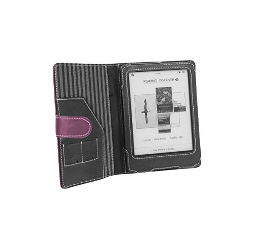 -. Feature : Sturdy and stylish faux leather case for your Kobo Glo eReader. Fits Kobo Glo eReader only. Available in black, red and purple. Not suitable for the Kobo Wireless / Kobo Vox / kobo Mini or Kobo Touch / Synthetic leather exterior with striped fabric interior. Soft yet strong and hard wearing / Magnetic catch easily secures case when not in use / Precision cut outs for on/off button, navigation and charging port. Includes three SD card pockets and stylus pen holder / Now with added safety. Our new Cover-Flap feature securely fastens your Kobo and prevents any accidental slips or falls from your Cover-Up