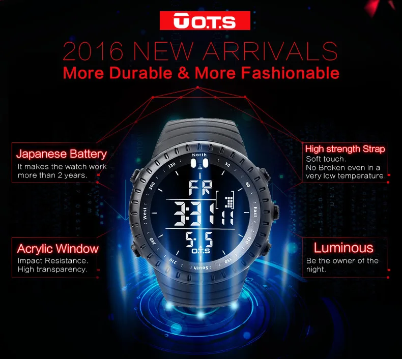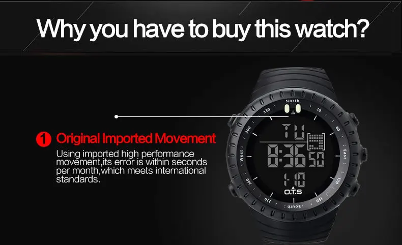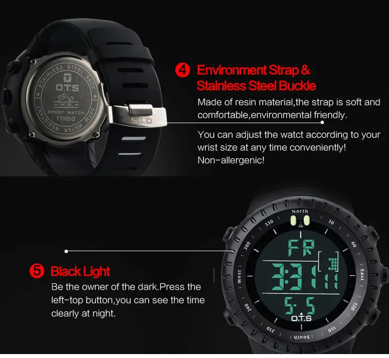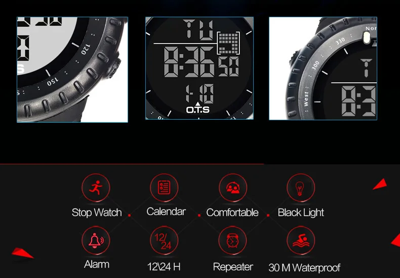 Feature:Back Light,Alarm,Water Resistant,Chronograph,Shock Resistant,Repeater,Stop Watch,Complete Calendar,Swim,Auto Date,LED display