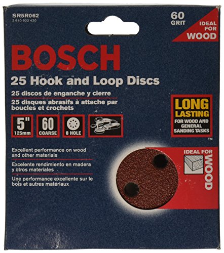 Bosch SR5R062 25-Piece 60 Grit 5 In. 8 Hole Hook-And-Loop Sanding Discs