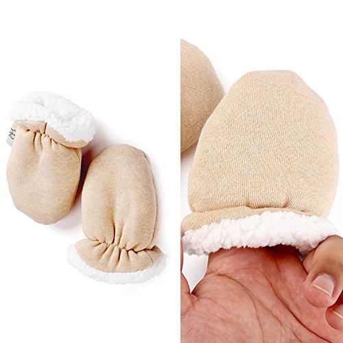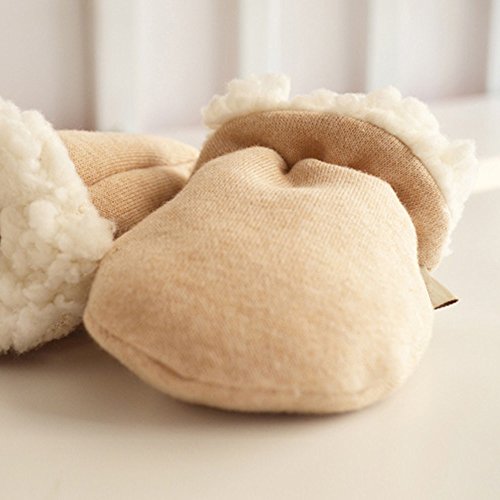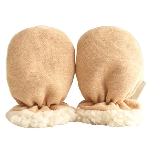 Description: Thicken Sherpa Lined the mitten gloves can keep your lovely baby stay warm Cuff of mitten has good flexibility,no slip and make your kids wrist comfortable It is big enouge to prevent your baby from Scratching face,easy on easy off for baby Specification:/b> Material: organic cotton lamb cashmere Color: camel Size: 13 * 11cm Weight: 0.025kg Package included: baby gloves scratch the face