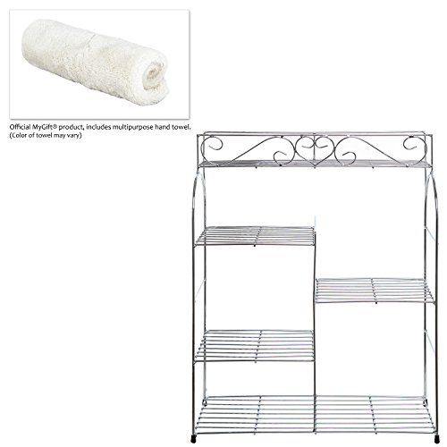 - Feature : Add a dash of modern scrollwork charm to your living space with this exceptional black metal rack which can be wall mounted (hardware included) or simply set on a table or shelf. / Featuring 5 shelves: 1 large on the top with an elaborate metal heart scrollwork design along the rim, 1 large on the bottom, and 3 side-shelves in between. / Organize and display anything from your favorite nail polish and lotion to your spices and condiments, as this rack does equally well in kitchens or bathrooms. / **Official MyGift® product includes multipurpose cleaning towel, wall mounting hardware and storage shelf only. Other items pictured not included.** / Approximate Dimensions (in inches): 20.9 H x 15.8 L x 6.3 W.