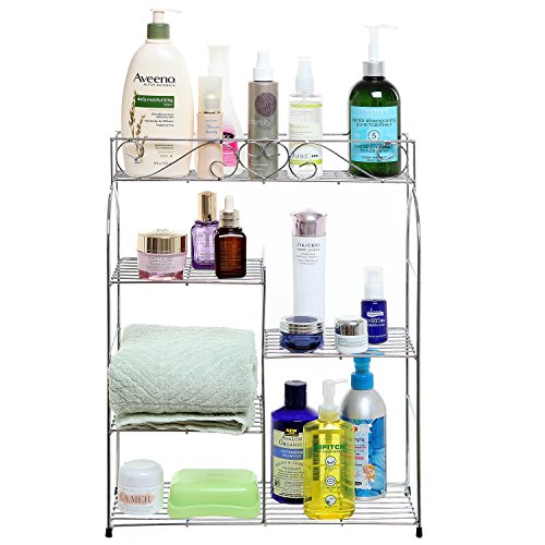 - Title : 5 Tier Silver Scrollwork Metal Freestanding / Wall Mounted Storage Rack / Kitchen & Bath Organizing Shelf