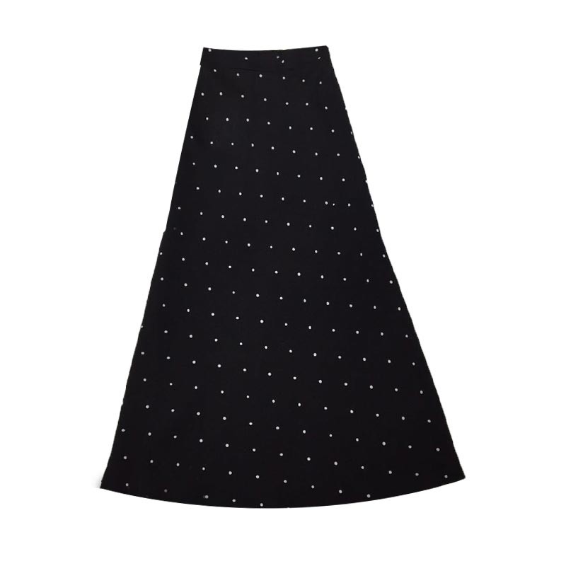 シックでレトロなブラック地にホワイトドットのロングフレアスカート♪