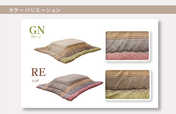 【商品名】 インド綿 こたつ厚掛け布団 こたつ布団 単品 『ミラン』 グリーン 205×205cm 【ジャンル・特徴】 シンプルモダンをテーマにデザイン。コタツ布団 こたつ掛け布団 ■サイズ・色違い・関連商品■約205×205cm グリーン[当ページ]■約205×205cm レッド関連商品の検索結果一覧はこちら 生地にインド綿を使用したこたつ布団です。シンプルモダンをテーマにデザインしておりますので、少し大人で素材感のあるお部屋のイメージにぴったりです。側地にはインド産の綿生地を使用しております。本商品はインド綿の生地を研磨することで少し毛羽立たせ、生地をやわらかく仕上げております。一般的なインド綿生地との肌触りの違いを実感して下さい。インド産の綿は繊維が太く、引っ掛かりや摩擦に強く耐久性に優れています。また、綿はポリエステルに比べ、冬場気になる静電気も起こりにくく、繊維の中でも特に肌触りがよいのが特徴です。部分暖房のコタツは電気代もおトクです。■商品スペック【サイズ】205×205cm【原産国】日本製(側=インド製 最終加工=日本)【素材】表地=綿100%【インド綿】 裏地=綿10