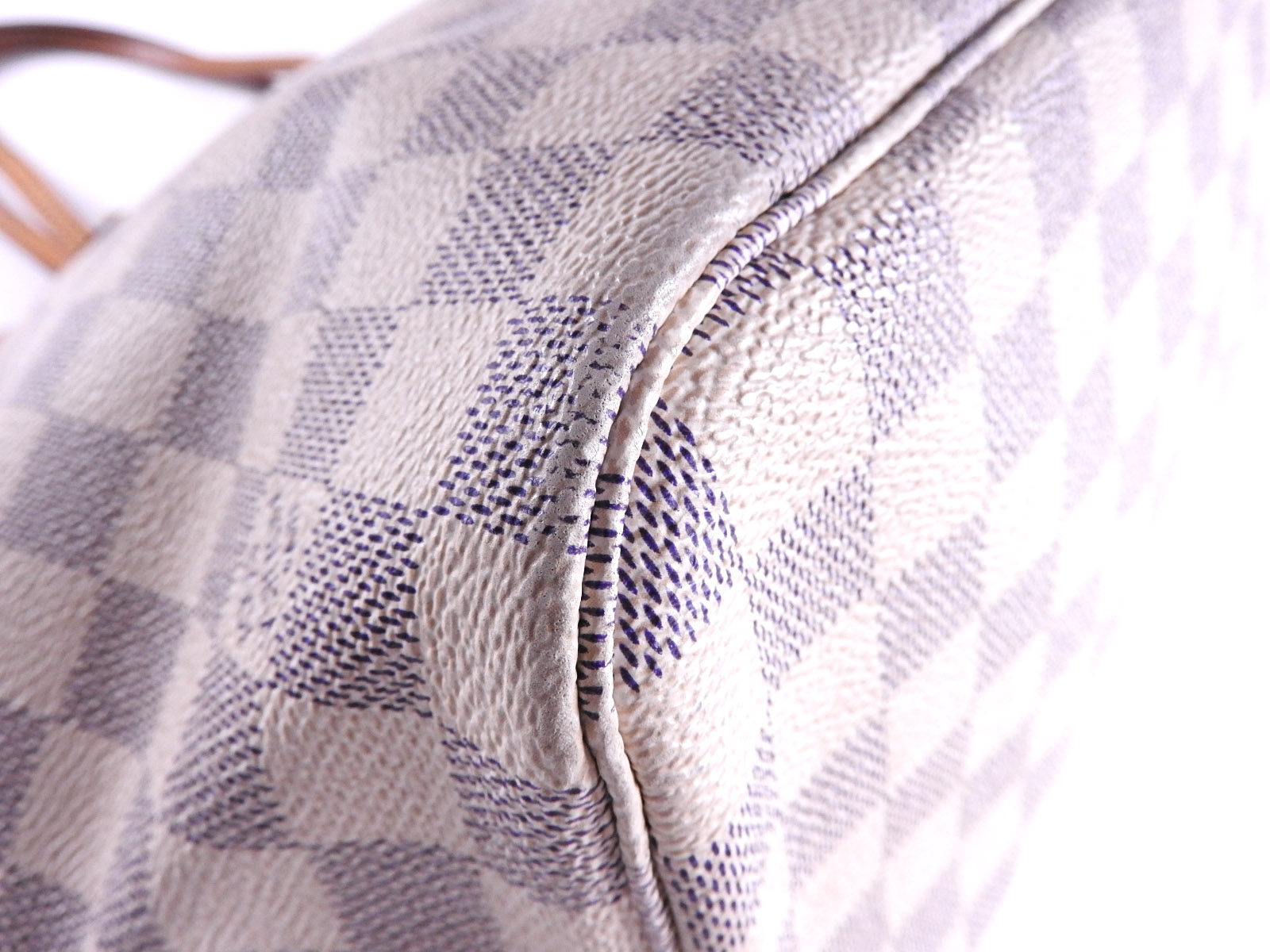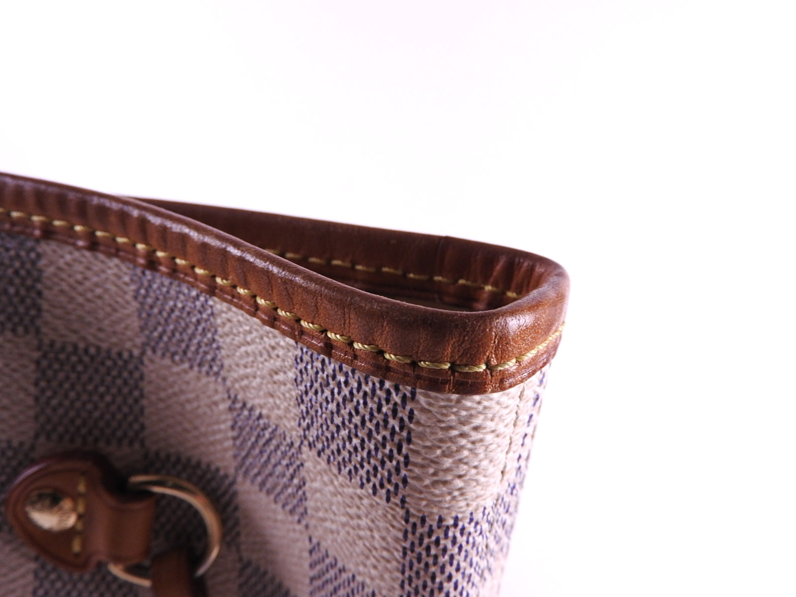 | Exterior | Damier azur canvas: Used feeling. Some stains. Leather: Used feeling. Some stains, abrasions and tanning. |