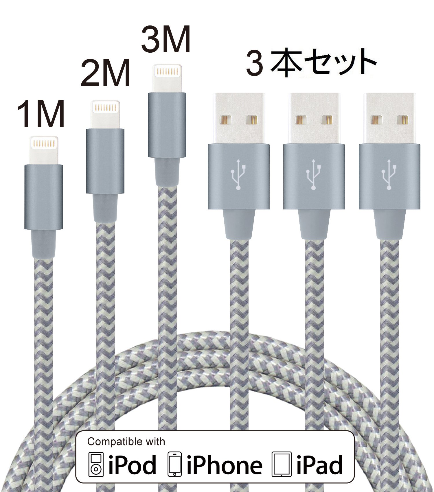 3 sets 1M / 2M / 3M High speed nylon knitting fast charging lightning USB cable.