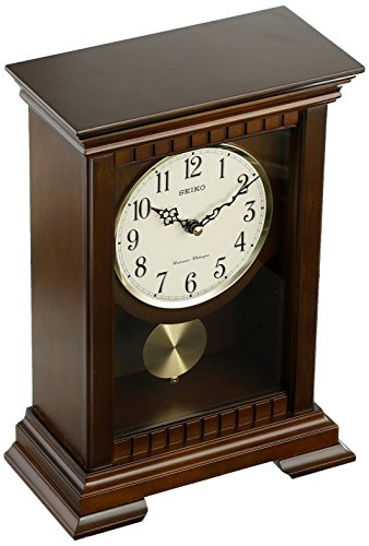The charm and classic design of the Seiko Mantel Chiming Pendulum Clock adds instant elegance to any space. This handsome clock has a wooden case in a medium-brown finish that complements any decor. It has a crystal glass cover on a door that opens to a pendulum with a gleaming gold finish. Each quarter-hour you’ll hear the Westminster/Whittington chimes, whose volume is easily controlled to your preference and can be silenced during the night. Over its 120 year history as a maker of fine timepieces, the Seiko name has become synonymous with cutting edge technology, ultra-precision, constant innovation and refinement. Millions worldwide rely on Seiko wristwatches to keep them on schedule. Two generations have grown up thrilling to Olympic and World Cup competitions where victory or defeat is defined within a fraction of a second, all overseen by Seiko timekeepers. 13H x 9.25W x 4.75D in.. Wooden case in medium-brown finish with crystal glass cover. Pendulum with gold finish. Quarter-hour strikes with nighttime silence and volume control. Requires 1 C battery (not included).Feature