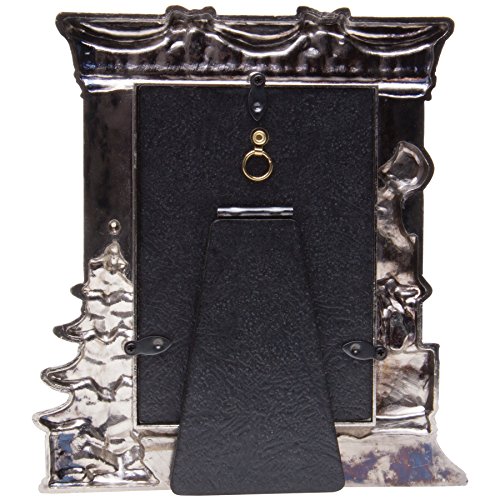 -. Feature : Beautiful pewter picture frame holds one 3.5" x 5" inserted through the back of the frame / Design features a child hanging a Christmas stocking and a Christmas tree with presents / This photo frame is perfect for displaying family photos or a picture with Santa Claus / The timeless design is great for all ages, makes the perfect stocking stuffer, and can be used for years to come
