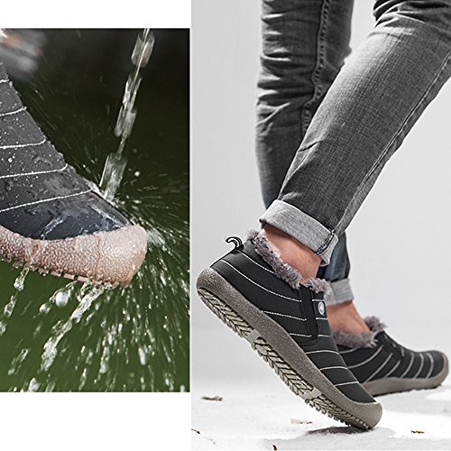 The warm snow shoes are with waterproof upper material, completely fur lined from top that keep feet warm, comfortable and fashion.The anti-slip rubber outsole allows for winter indoor and outdoor wear comfortably. The shoes are suitable as a gift for lovers friends and parents. Below it will help us choose right size for shoes, compare the chart size with your feet length carefully before ordering.Thank you! Size Chart(cm): Women US6=Foot Length 220-230mm Women US6.5=Foot Length 230-235mm Women US7=Men US6.5=Foot Length 235-245mm Women US7=Men US7=Foot Length 245-255mm Women US7=Men US7.5=Foot Length 255-260mm Women US8.5=Men US8=Foot Length 260-270mm Women US9=Men US8.5=Foot Length 270- 275mm Women US9.5=Men US9= Foot Length 275-280mm Men US9.5=Foot Length 280- 285mm Men US10=Foot Length 285- 290mm Men US10.5=Foot Length 295- 300mm Features: - Warm - Lightweight - Waterproof - Fit for women,men - Fit for gift - Fit for Winter Package includes: 1 x Pair of Shoes 0