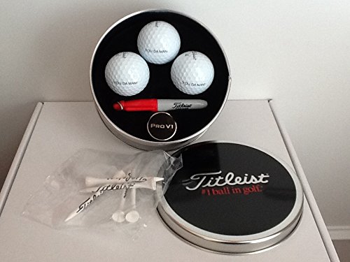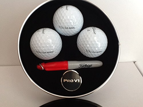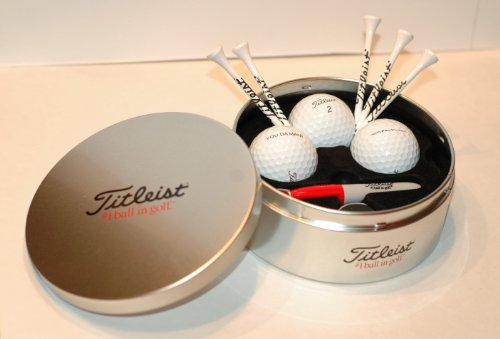 Studio : Titleist Publisher : Titleist Binding : Misc. Product Description A unique gift that doubles as a keepsake to hold your valuables. Featuring a brushed aluminum finish, this tin includes 3 Pro V1 or Pro V1X custom logged golf balls, 1 Titleist Sharpie mini, 1 Titleist Pro V1 ball marker and 5 Titleist tees. The Titleist Pro V1 logoed tin is one of a kind. 0