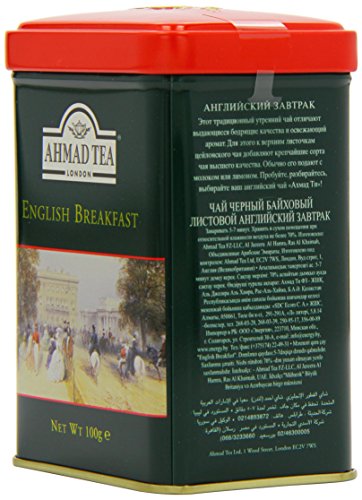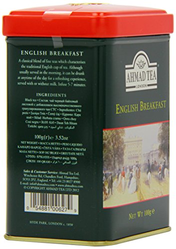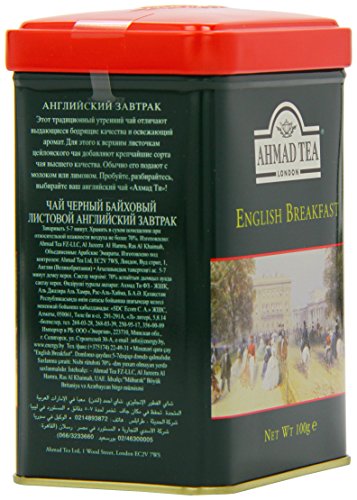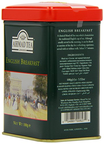 -. Binding : Grocery -. Brand : Ahmad Tea -. EAN : 0054881006279 -. Feature : Great gift idea / Ahmad Tea is a member of the United Kingdom Tea Council -. Label : Ahmad Tea -. Manufacturer : Ahmad Tea -. Model : 627 -. MPN : 627 -. NumberOfItems : 6 -. PackageQuantity : 6 -. PartNumber : 627 -. ProductGroup : Grocery -. ProductTypeName : GROCERY -. Publisher : Ahmad Tea -. ReleaseDate : 2008-01-15 -. Studio : Ahmad Tea -. Title : Ahmad Tea English Breakfast Tea, 3.5-Ounce Tins (Pack of 6) -. UPC : 054881006279
