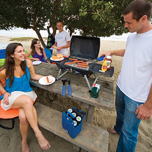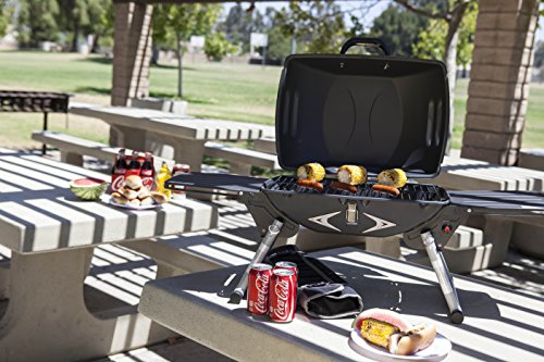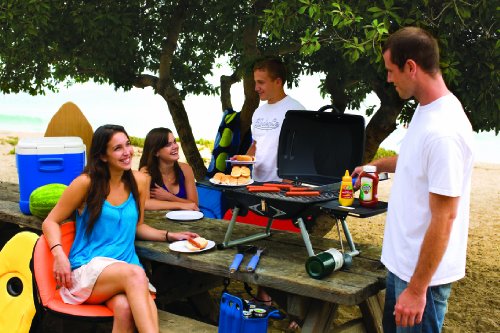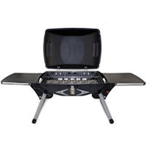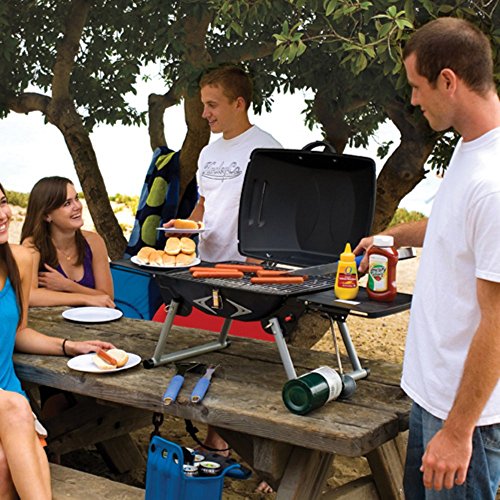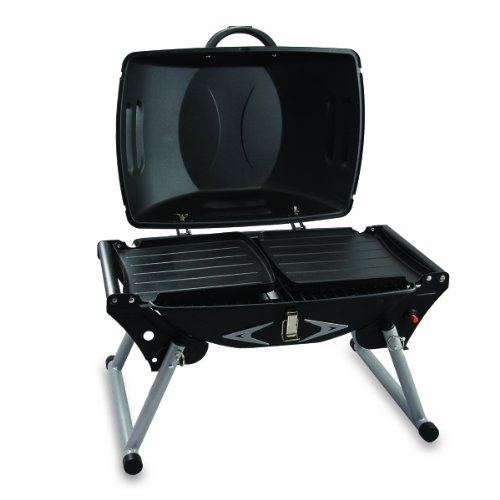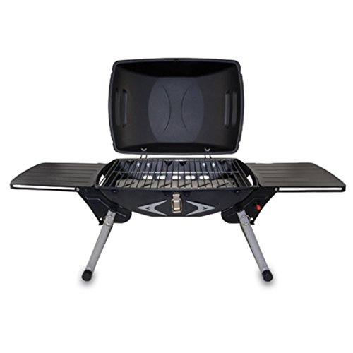 Product DescriptionHeavy duty, portable gas grill with built-in igniter and two fold-out side tables. Folds up for easy storage. Propane not included.