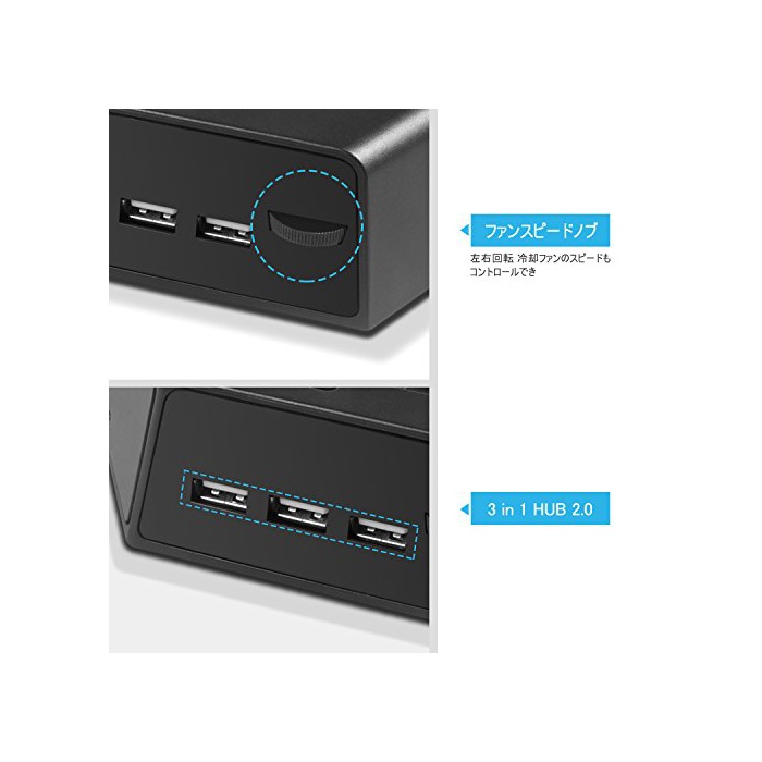 【방열성 발군&안정성】스탠드 내부에 냉각 팬을 2 기대비해 있습니다.평온 팬을 채용 하고 있기 때문에 할 수 있는 만큼 음을 경감 하고 있습니다. 냉각 팬 스피드 조정 버튼도 붙기 때문에,음이 신경이 쓰이는 경우는 개인에 의해 조정에 옵니다.그리고,스탠드의 자중으로 안정성도 업 한 상품입니다.