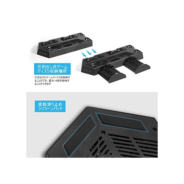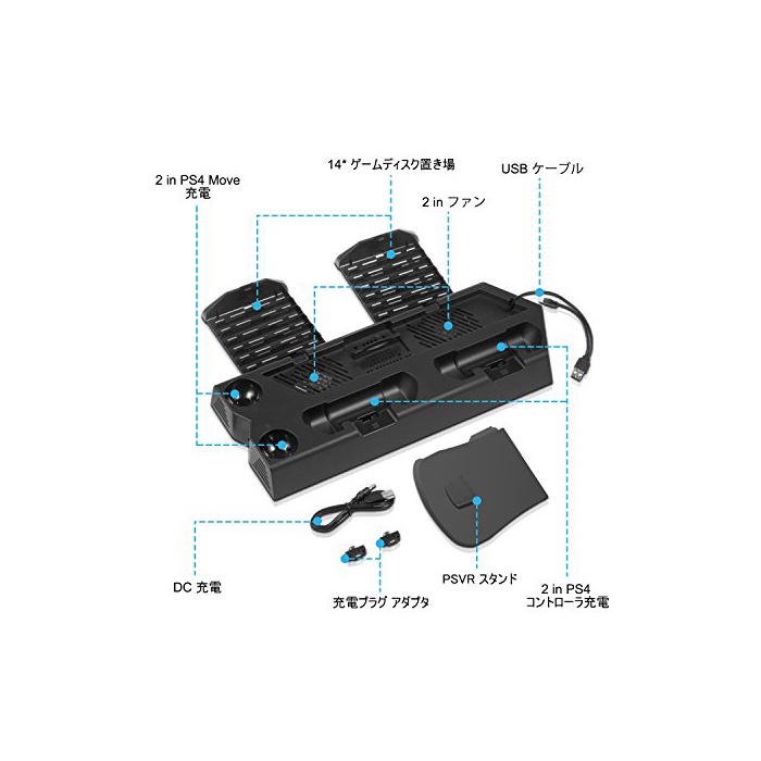 원본상품명: KetenTech 最新版 PSVRスタンド PS4/PS4 PRO/PS4 SLIM置き 充電スタンド PS4ディスク納14枚 ソフト納 コントロラ2台充電 VRヘッドセット納 USBハ