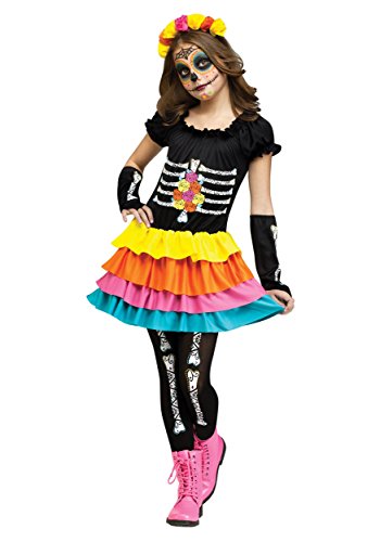 -. Brand : Fun World -. Color : Multi -. Department : girls -. Feature : Includes: Dress, Pair of Sleevelets, Footless Tights, Headband -. Label : Fun World -. Manufacturer : Fun World -. MPN : FW124082LG -. PackageQuantity : 1 -. PartNumber : FW124082LG -. ProductGroup : Apparel -. ProductTypeName : APPAREL -. Publisher : Fun World -. Studio : Fun World -. Title : Dia De Los Muertos Girl Kids Costume