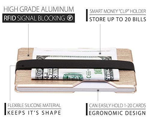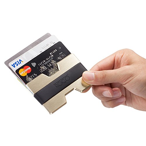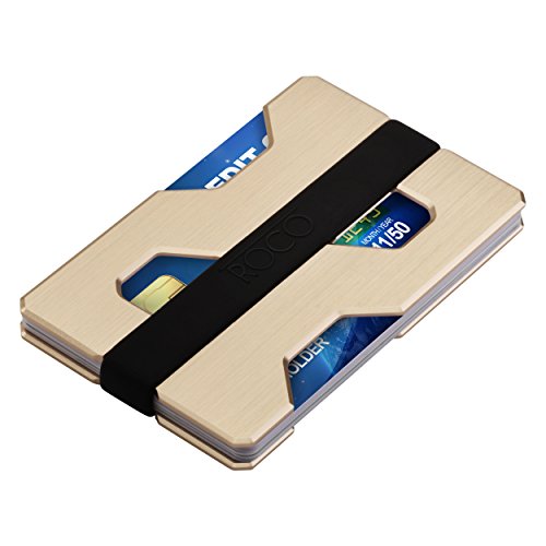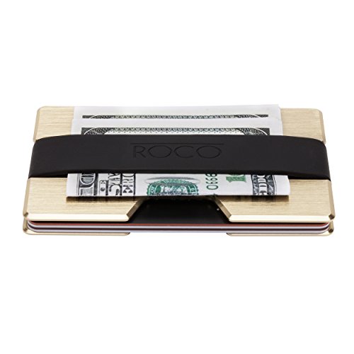 ROCO Minimalist Aluminum Slim Wallet RFID BLOCKING Money Clip - No.2 (Futuristic Gold)