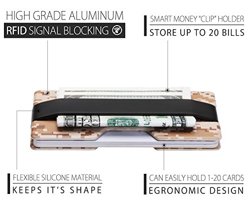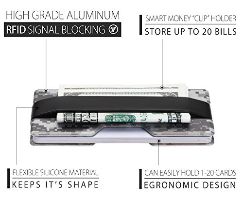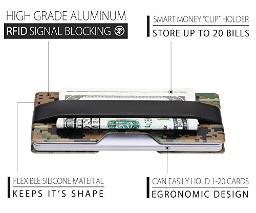 ROCO Minimalist Aluminum Slim Wallet RFID BLOCKING Money Clip - No.2 (Standard, Woodland Digital)