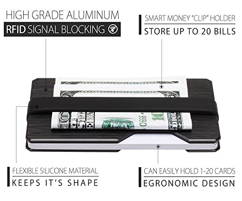 ROCO Minimalist Aluminum Slim Wallet RFID BLOCKING Money Clip - No.2 (Black)