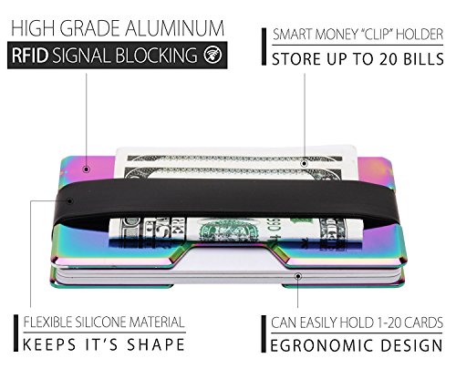 ROCO MINIMALIST Aluminum Slim Wallet RFID BLOCKING Money Clip - No.2 (Rainbow)