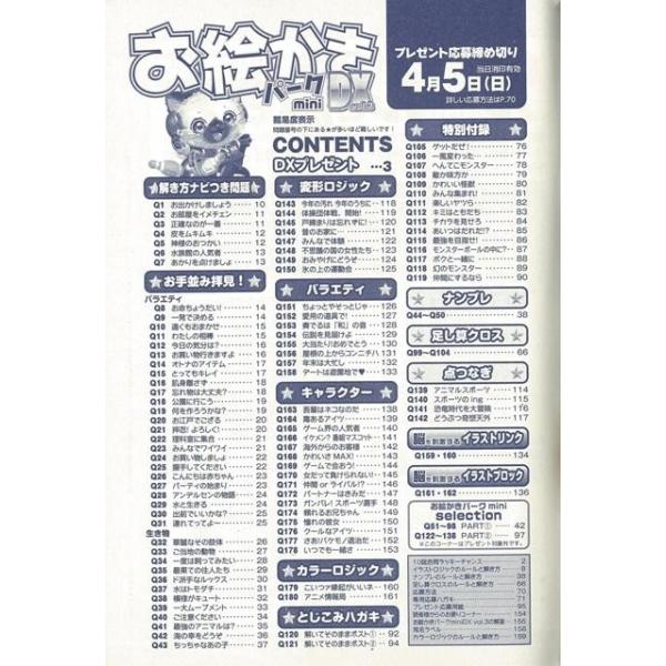 【商品基本情報】 商品名称:お絵かきパークmini DX vol.3 著者/出版社:/ 初版発行日:2015/02/15 サイズ:A5判 ページ数:158 ISBN/JAN:4528189420250/4528189420250