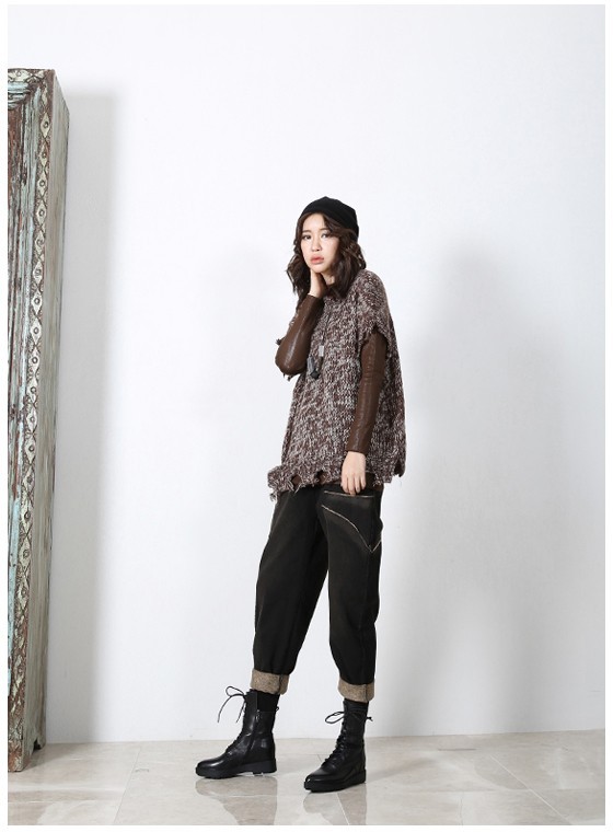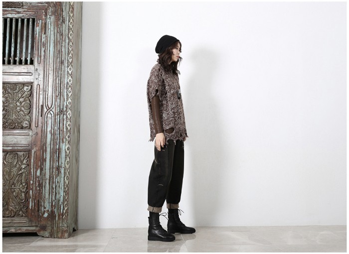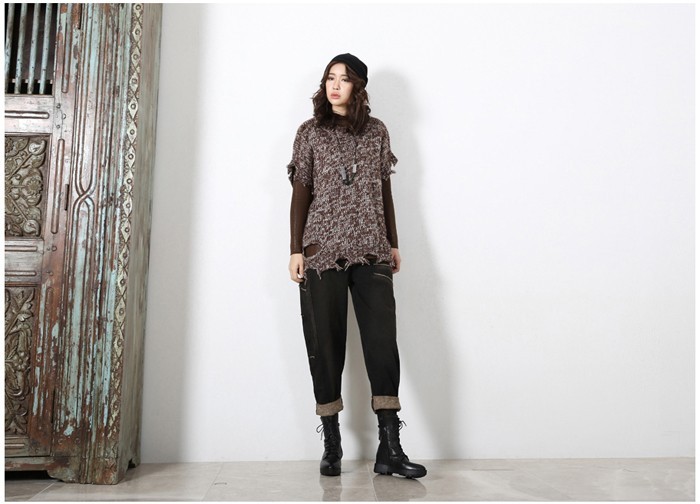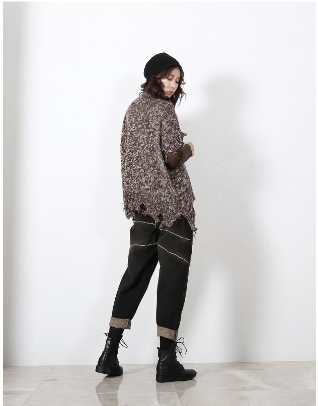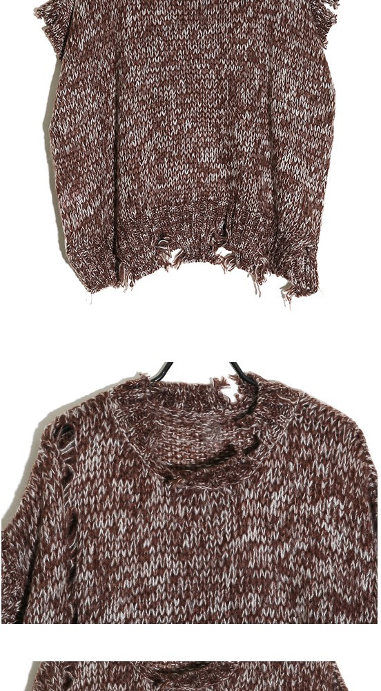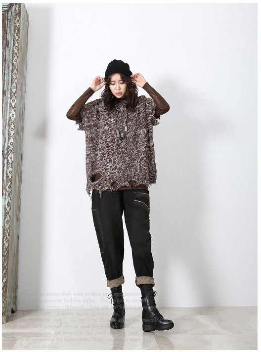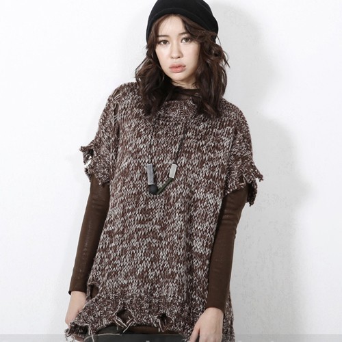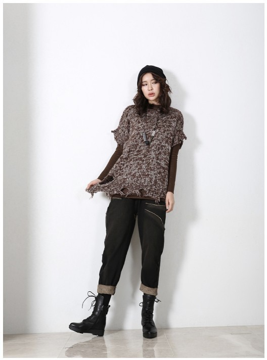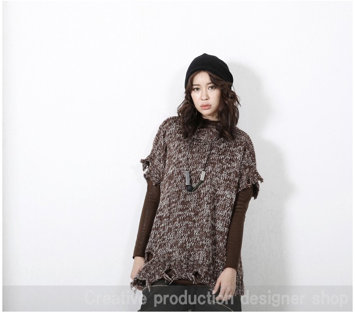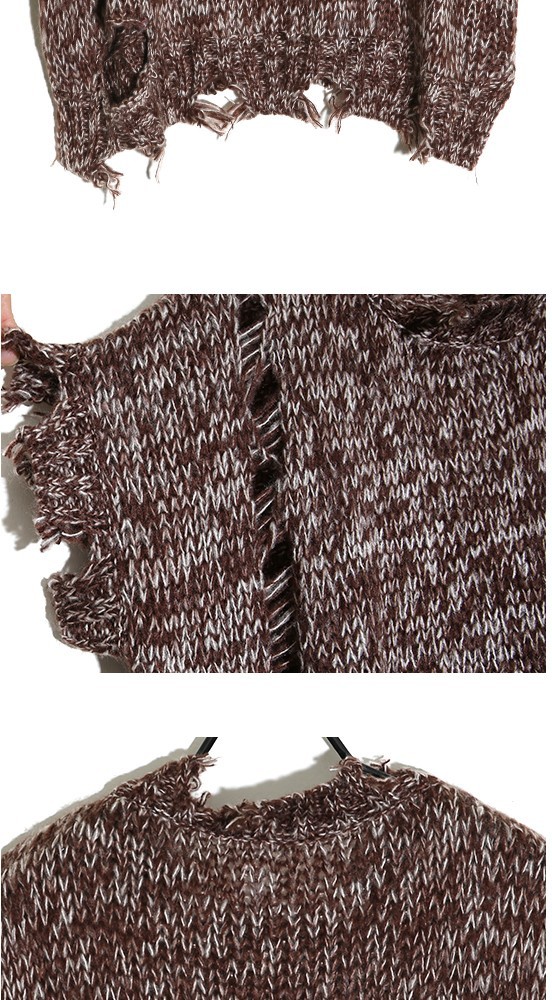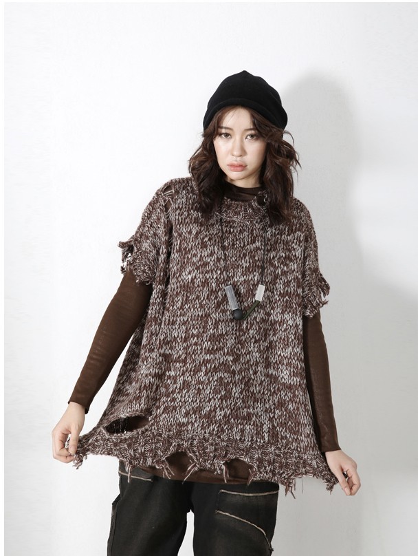 商品名:ニット レディース トップス セーター ダメージ 半袖 秋 冬 2017 モード系 個性的 40代 ファッション