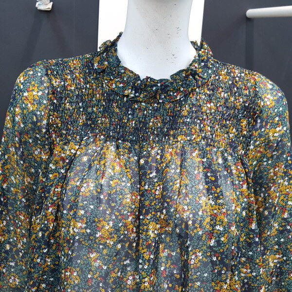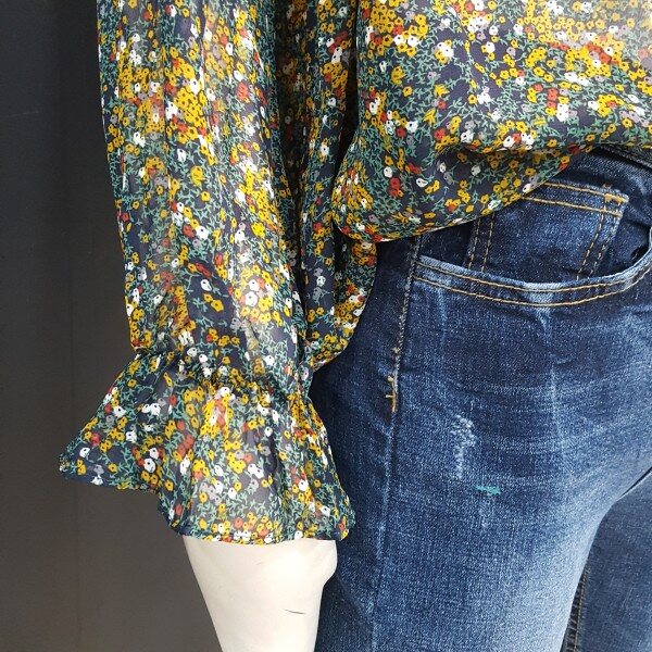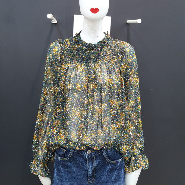 플라워패턴의 쉬폰블라우스입니다.여러 아이템과 매치하여 트랜디하게 연출해보세요.