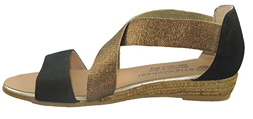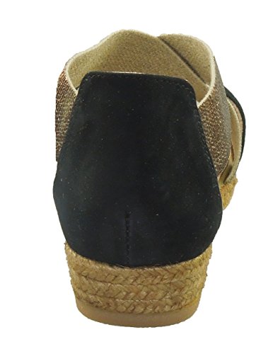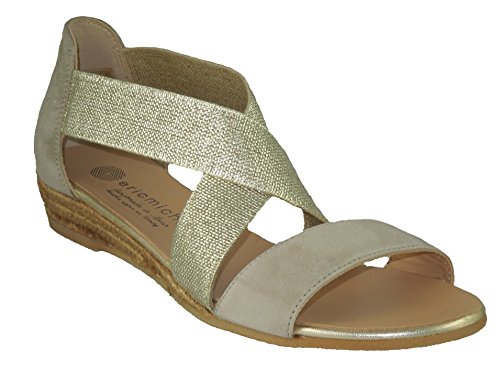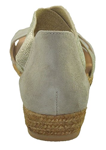 Product DescriptionCombination suede and metallic elastic upper in an appealing silhouette. Easy slip-on with elasticity for a comfortable fit. Leather and textile lining. Cushioned footbed. Espadrille-wrapped non slip rubber sole. Imported.0