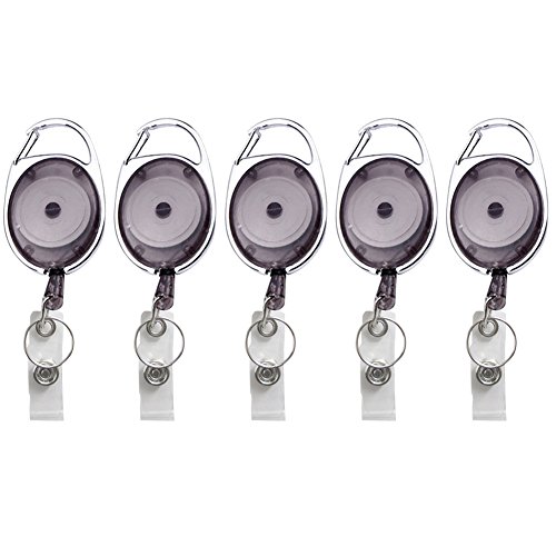 ALTTIMERY Retractable Carabiner Badge Holder ID Card Holder Reel with Key Ring and Badge Strap, Pack of 5