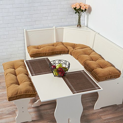 -. Title : Greendale Home Fashions 4-Piece Nook Cushion Set, Cherokee Solid Microfiber, Wine