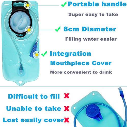 -. Feature : SAFE GOOD TASTE AND LEAK PROOF WATER BLADDER: This hydration pack's 2L water bladder is made of PDA APPROVED FOOD GRADE TPU material.And we promise that it doesn't contain any chemical toxic and it's BPA FREE.And we promise that our water pack will provide you with good taste and safe water all the time.In addition,the edges of the water bladder has adopted the updated LEAK PROOF technology. And the integration design can keep the water bladder meticulously sealed. / COMFORTABLE AND GOOD VOLUME: Our hydration pack is made of breathable foam,which can provide you with comfortable and cool experiences.And the strap of our hydration backpack is breathable as well. What's more, our water pack contains more space for your hiking equipment.The hydration pack will fit your clothes, iPad, phones quite well. / LIGHT AND WELL FIT: The breathable foam and nylon materials make the hydration pack light and durable. And the elastic belly bands hold you tighter than those hydration backpacks which doesn't have belly bands. And it can help you save your energy and it can FIT MEN AND WOMEN QUITE WELL. / WATER PROOF AND ANTI SPLIT HYDRATION PACK WITH REFLECTIVE BANDS:IPX 6 nylon material makes our hydration backpack water proof and anti split.In order to provide our customer with safer outdoor experiences, reflective bands are enclosed with our hydration pack. It will help you warn others and protect you from accidents. / 100% MONEY BACK GUARANTEE AND LIFE TIME WARRANTY: We try our best to provide our customers with the most satisfying services. And we have 100% MONEY BACK GUARANTEE AND FREE REPLACEMENT SERVICES.There is no need to worry about how to get your money back. We will devote ourselves to satisfying your requirements.