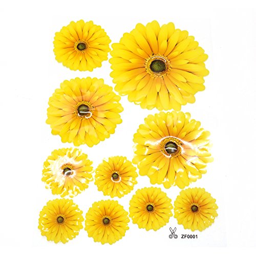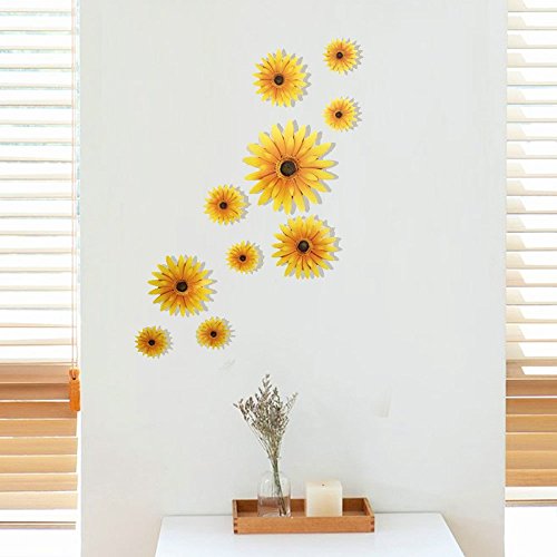 HUELE 10PCS Stereo Daisy Removable 3D Sunflower Wall Sticker Home Decor Room Decals Stickers Home DIY Decoration