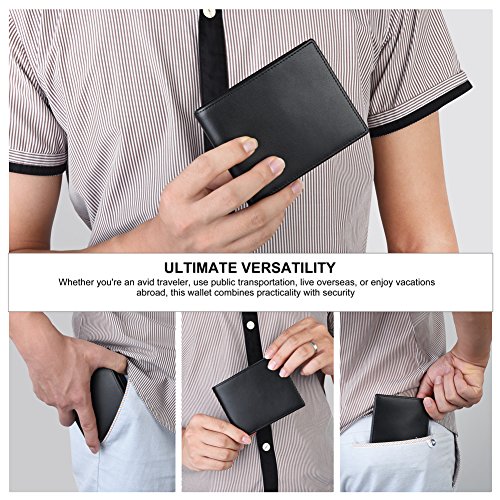 -. Feature : MATERIAL:Made of high-end and abrasion resistant genuine leather, smooth touch feeling and durable in use. / SECURE: Adopts Radio Frequency Identification Denoting Technologies, our inbuilt RFID protection will stop thieves from scanning and obtaining your credit card or other RFID coded information carried in our wallets. / LARGE CAPACITY: Features 1 ID window for quick access, with 6 card slots and more hidden slots, you will not be short of space for all your important cards, also 2 open slots for your large dollars. / ULTIMATE VERSATILITY: Whether you're an avid traveler, use public transportation, live overseas, or enjoy vacations abroad, this wallet combines practicality with security / GIFT FOR FRIENDS AND RELATIVES