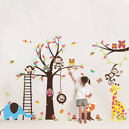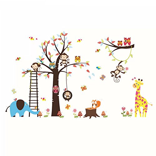 - Title : Asunflower® Nursery Forest Animals Product Details Owls Monkey Elephant Lion Animal World Decal Wall Stickers for Kids Rooms (Animal Worlds)