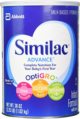 -. Binding : Health and Beauty -. Brand : Similac -. EAN : 0070074585864 -. Feature : Closer than ever to breast milk / From 6 months - 12 months Complete nutrition for your baby's first year Features OptiGRO, an exclusive blend of important ingredients found in breast milk / DHA, Lutein and Vitamin E / America's #1 Baby Formula Brand* (*Total US infant formula all outlets as of 31 Dec 2013, Nielsen data) / Simply add it to water and mix -. IsAdultProduct : 0 -. Label : Abbott Nutrition -. Manufacturer : Abbott Nutrition -. Model : 63375 -. MPN : 63362 -. NumberOfItems : 1 -. PackageQuantity : 1 -. PartNumber : 63362 -. ProductGroup : Health and Beauty -. ProductTypeName : HEALTH_PERSONAL_CARE -. Publisher : Abbott Nutrition -. Size : 1.93 lb -. Studio : Abbott Nutrition -. Title : Similac Advance Stage 1 Baby Formula - Powder- 1.93 lb -. UPC : 070074585864