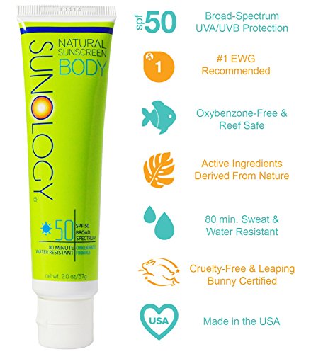 Sweat-resistant sport sunscreen without oxybenzone and avobenzone; perfect for an active lifestyle. Protect your skin with Sunology for body. Nourishing, natural moringa oil supplies the skin with necessary nutrients and antioxidants, which provide essential, free-radical fighting vitamins C and E. Active ingredients zinc oxide and titanium dioxide gently protect the skin at the surface for all-over sun safety. Sunology is gluten free, paraben free, and cruelty free sunscreen. Packaged in a conveniently travel-sized, TSA approved 2 ounce tube, Sunology fits in any purse, pack or pocket for everyday protection. Directions for Use: With Sunology's concentrated formula, a little goes a long way. Apply evenly to all exposed skin daily 15 minutes before sun exposure to help prevent sunburn. Re-apply every 2 hours or after swimming, excessive perspiration, or towel drying.Feature