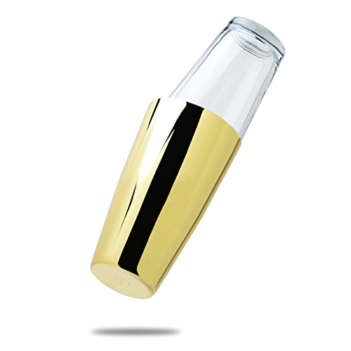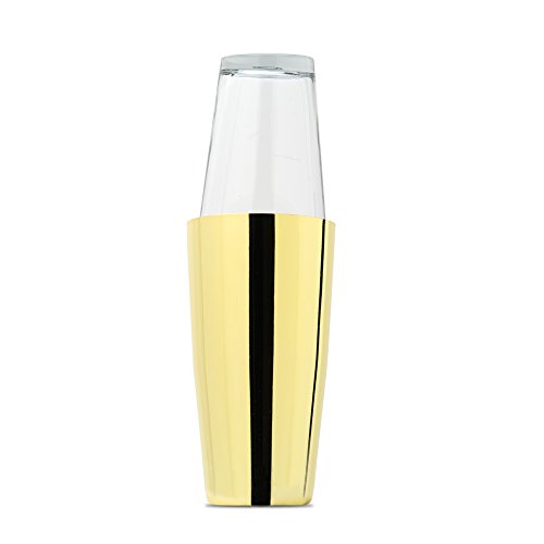 - Boston Shaker set includes one 28oz Tin & one 16oz Glass^18/8 Stainless Steel Tin^Tin uses a thicker gauge steel for sturdiness and a weighted design^Tin is seamless for a more elegant look^Glass is Rim Tempered: heat is concentrated on the rim area