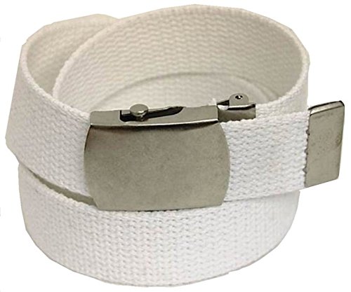 -. Feature : Military Cargo Belt Made in USA / 100% Cotton Web Strap with Matte Finish Nickle Slide Buckle and Tip / 54" total length;1-1/4" wide Fits up to sz. 50 / Fully adjustable strap can be cut to size / Belt for casual, work, camping, outdoor, scouting, military or uniform