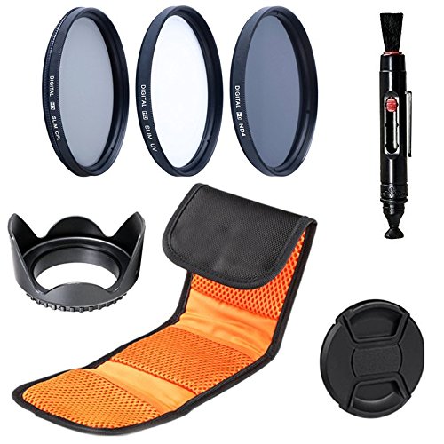 Product DescriptionFILTER KIT INCLUDES: 72MM "Slim" Ultraviolet (UV) Filter - "Slim" Circular Polarizer (CPL) Filter - Neutral Density (ND4) Filter - Lens Hood - Lens Cap - Lens Pen - Filter Wallet Case. ULTRAVIOLET (UV) FILTER: Protects Lens Will Block all the Haze aka excessive Ultraviolet light. SLIM FRAME: Perfect for Wide Angle Lenses. CIRCULAR POLARIZER (CPL) FILTER: Color Saturation - Darkens The Sky - Eliminate Reflection - More Dramatic Clouds. Neutral Density ND4 FILTER: Slows down the camera's shutter speed. Cuts Light by 2-stops. Perfect for Cloudy Day or Dusk and Dawn.0
