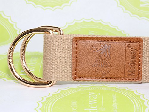 Modeway Canvas Web Double D-Ring Belt, firm center buckle,slide and fit,will hold its place comfortable fitting.Reinforced for long lasting use.Detail stitched strap flexible for best comfort,great for heavy duty use.Comes in 3 different sizes,great fitting options for everyone!inquire within for any sizing questions.Modeway Womens Mens Star Sign Canvas Web Double D-Ring Leather Gold Buckle Belt Size Table: