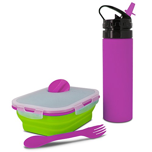 Smart Planet Combo Pack Meal Kit with Water Bottle, Green/Pink