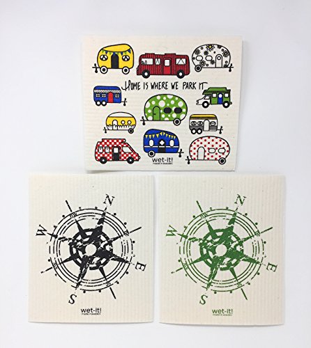 - SWEDISH CLEANING CLOTH: Set of 3 Swedish cleaning wash dish cloths Wet-It featuring My RV / Cars, Green and Black Compass. Specifically designed for adventure seekers, travelers, RV owners and those on the move with good or no sense of directions!