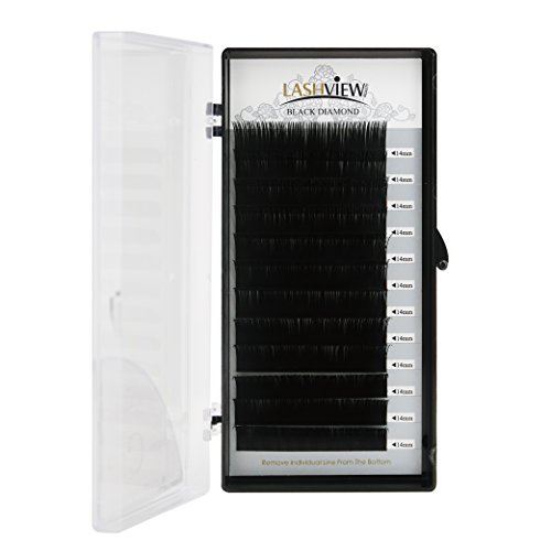LASHVIEW Eyelash Extensions Individual Mink Eyelash 0.15mm D Curl 14mm Mink Lashes Extensions Ellipse Flat False
