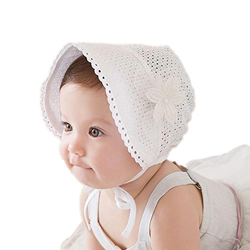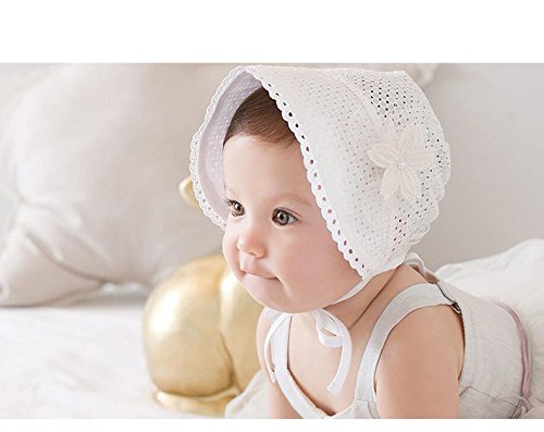 Binding : Apparel Product Description Lovely classic styled baby bonnet is made in cotton eyelet fabric decorate with flower. Packable for easy storage and travel.Makes a Great Gift. Popular element: Flowers ,Bowknot,Star Suitable for 3-12 months baby. Notes: Color of pictures may vary by different monitor setting. All pictures are real stock photos. Care instructions:hand wash dry flat do not bleach 0