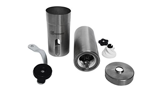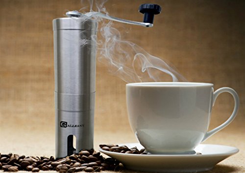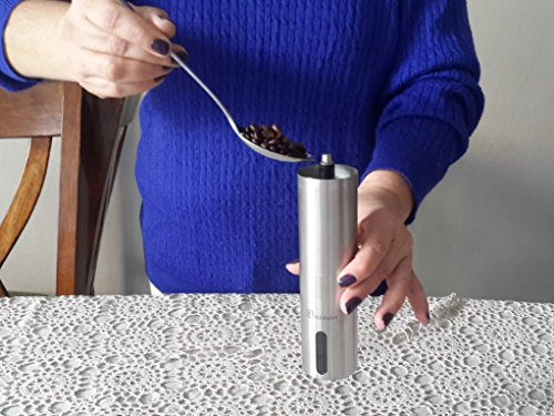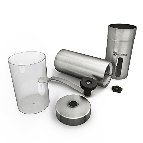 GALLEANY MANUAL CERAMIC COFFEE GRINDER - BEST ADJUSTABLE CONICAL CERAMIC BURR - HAND COFFEE MILL STAINLESS STEEL- AEROPRESS COMPATIBLE