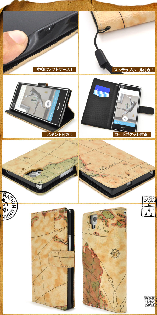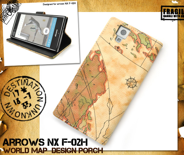 スタイリッシュな地図デザイン! arrows NX F-02H用ワールドデザインケースポーチ | | |